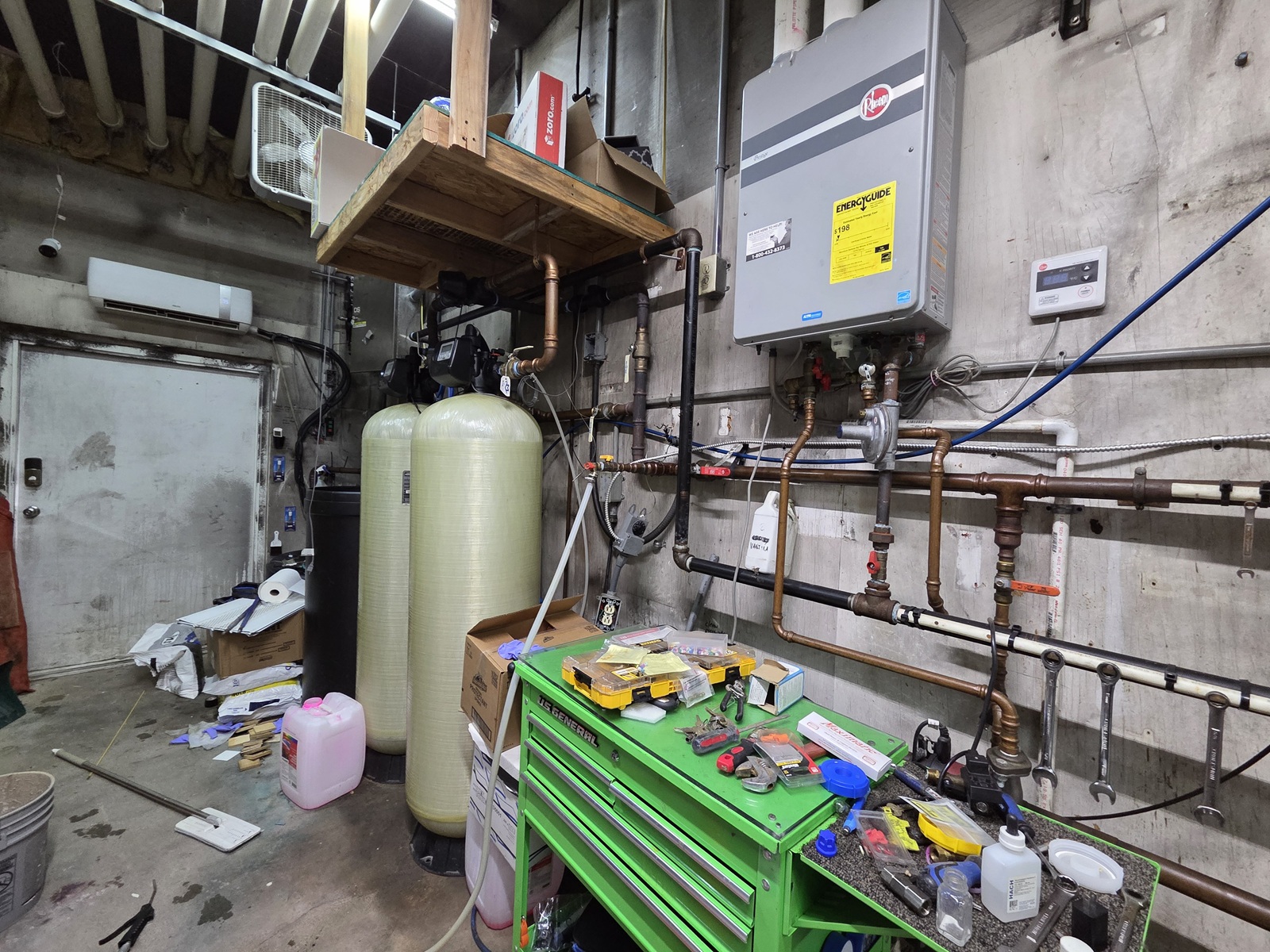 - Cooling features: Mini-split in office