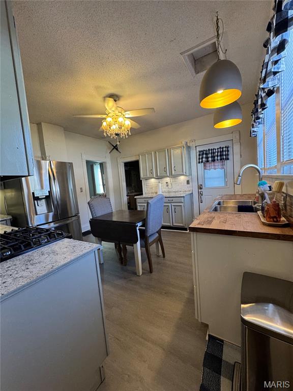 Step inside to find a welcoming living area that flows into a spacious kitchen with room to gather and dine. Both bedrooms offer comfortable space, and a dedicated mudroom adds everyday convenience. Laundry is neatly tucked away to keep the main areas organized. Vinyl flooring and classic finishes throughout create a clean, low-maintenance interior, and stainless steel appliances are already in place.