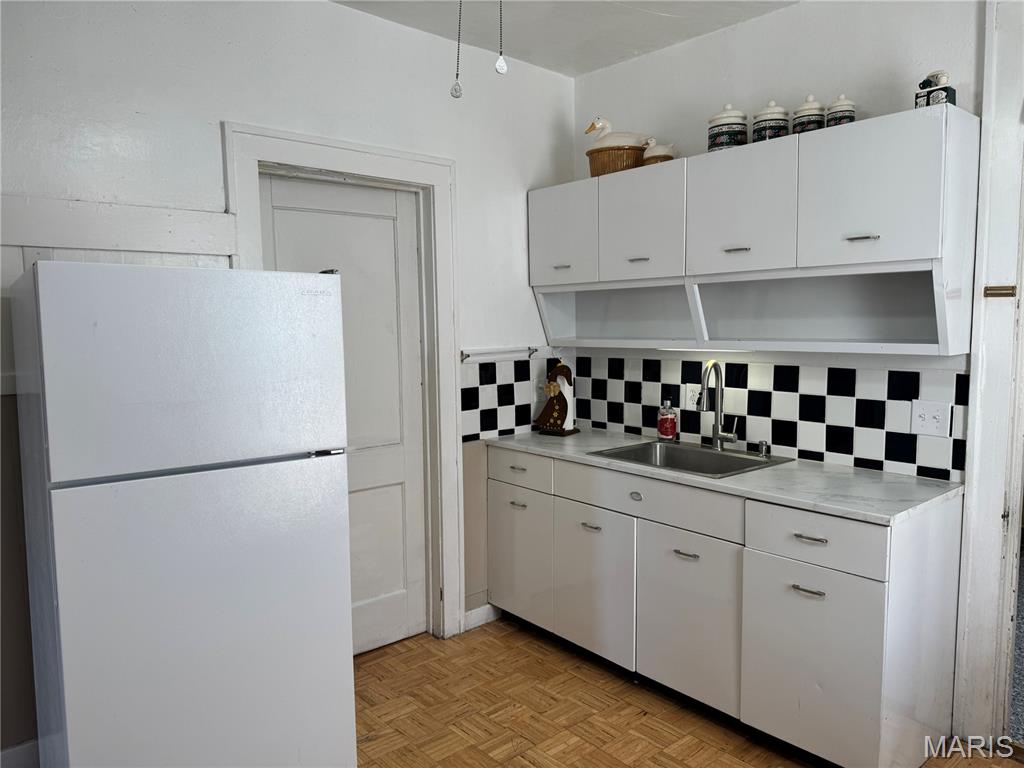 Charming bungalow full of character! You’ll love the arched doorways, hardwood floors, and classic panel doors that give this home its cozy personality. The bright living room opens to the dining area through an archway, creating a spacious feel with tons of natural light. The kitchen features white cabinetry, open shelving, and a fun black-and-white backsplash. Although this home has one bedroom, the dry unfinished basement offers flexible space — perfect for storage, hobbies, or even an occasional guest setup. The laundry room is a separate space with a good sized closet adding extra storage. The side entry leads to a fenced yard, detached garage (with alley access), and a concrete patio ideal for grilling or relaxing outdoors. Replacement windows, roof 2 years old including the garage, new sewer line. Don't rule this one out — this charming bungalow has so much to offer! #lovewhereyoulive