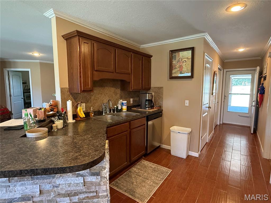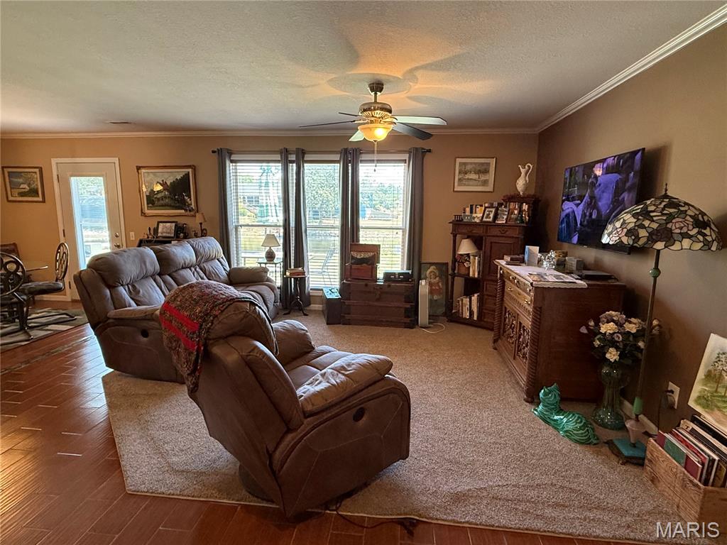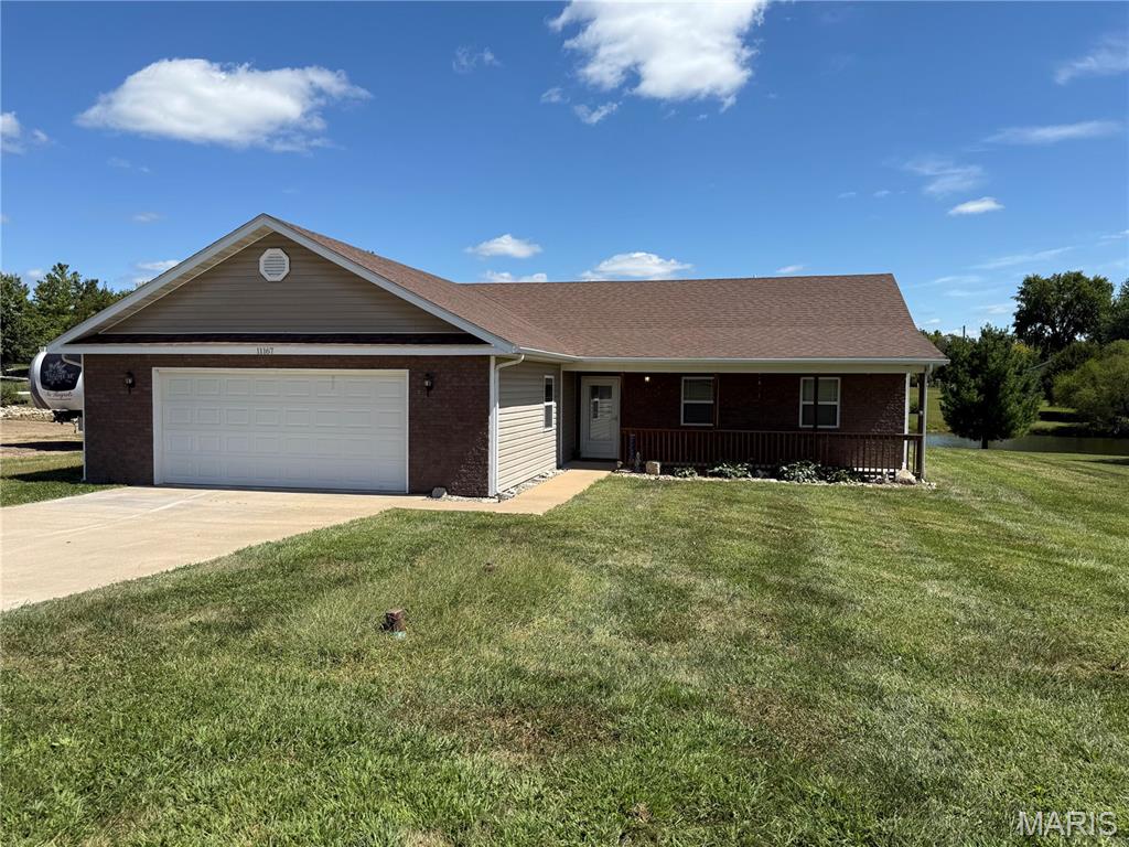 Ranch style, all main level living, and backs to a lake! Welcome to this home that has three bedrooms and two bathrooms. Open concept living room, dining room, and kitchen with hard surface flooring. Kitchen has all appliances and breakfast bar. Off of the dining room is a door to the patio and backyard with acces to lake and private dock. Two car attached garage with storage room. Home is located in Lake Hannibal Estates with access to clubhouse and lake. This property features no steps, low maintenance living, and a serene setting.