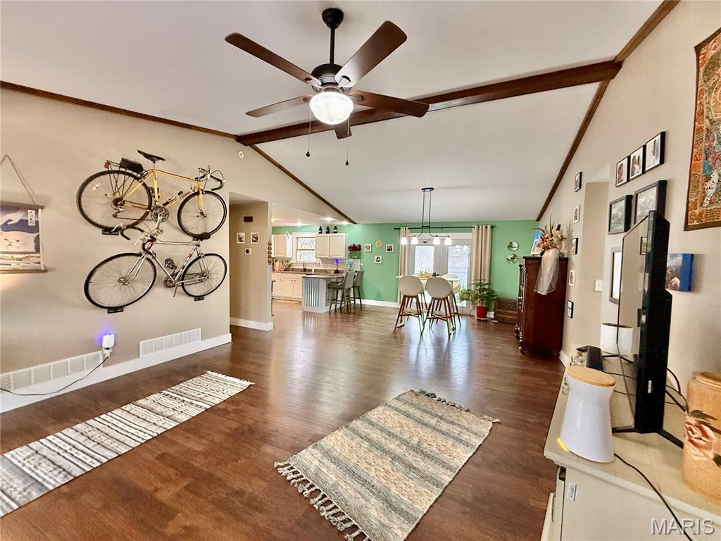 Welcome to peaceful country living on 3 scenic acres surrounded by abundant wildlife and open skies. This beautifully updated 4-bedroom, 2-bathroom home blends modern finishes with rustic charm for the perfect retreat. Renovated in 2024, the home features high-end touches throughout, including granite countertops in the kitchen and bathrooms, engineered wood flooring across the main level, and stunning vaulted ceilings accented with rustic beams that create warmth and character. The thoughtfully designed main level includes a primary suite with private bath, two additional bedrooms, and convenient main-level laundry. The open-concept kitchen and dining area flows seamlessly together, making it ideal for entertaining family and friends. Step out from the dining room onto the deck — the perfect place to enjoy your morning coffee or unwind in the evenings while soaking in the peaceful country views. The partially finished basement expands your living space with a generous family room featuring an electric fireplace, plus an additional bedroom. The unfinished area provides ample storage space with room to grow. If you’re looking for modern comfort wrapped in a serene country setting, this home delivers the best of both worlds.