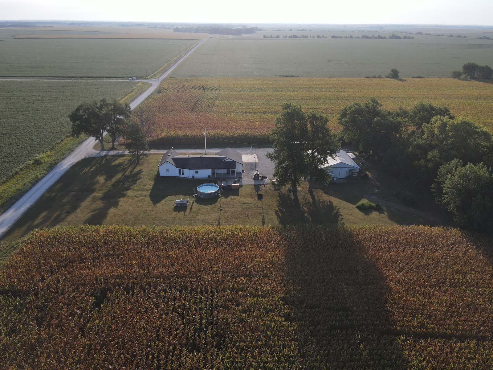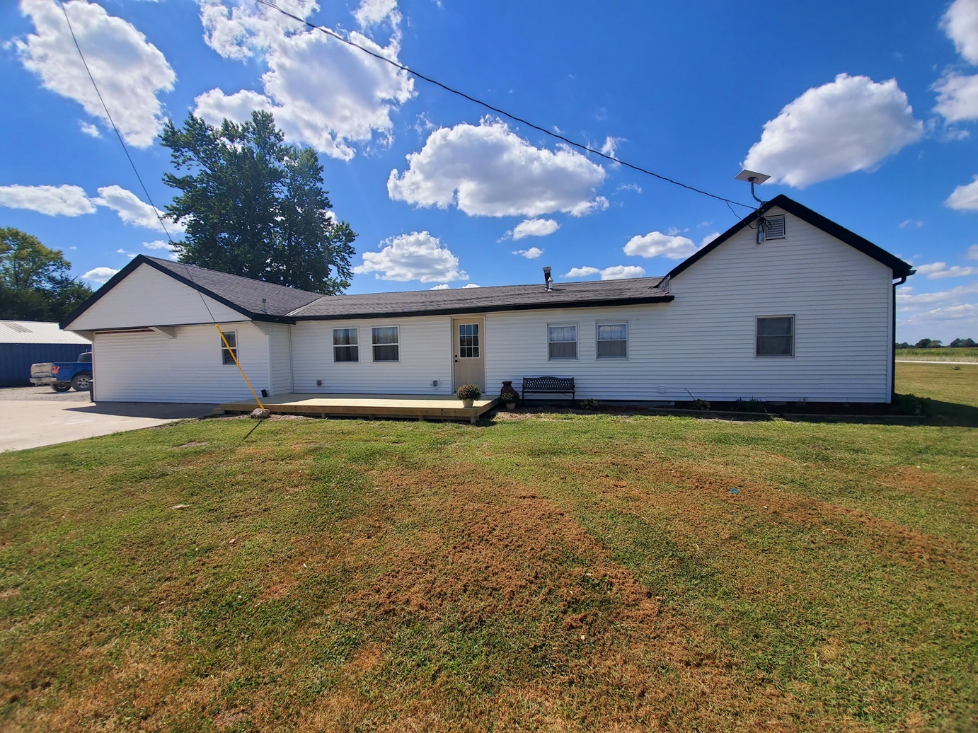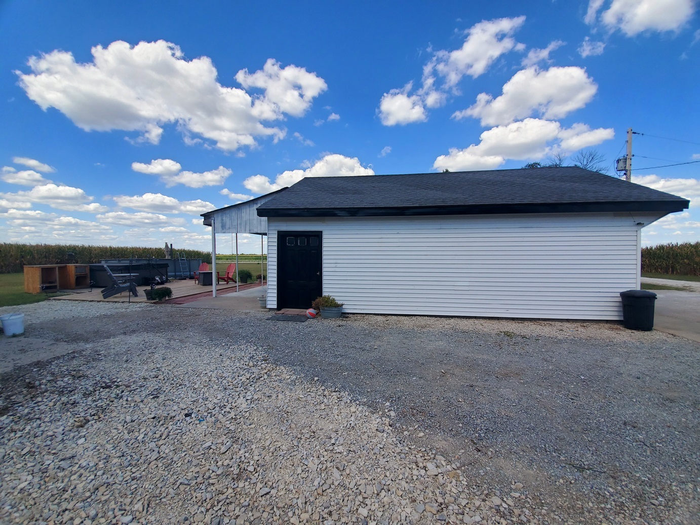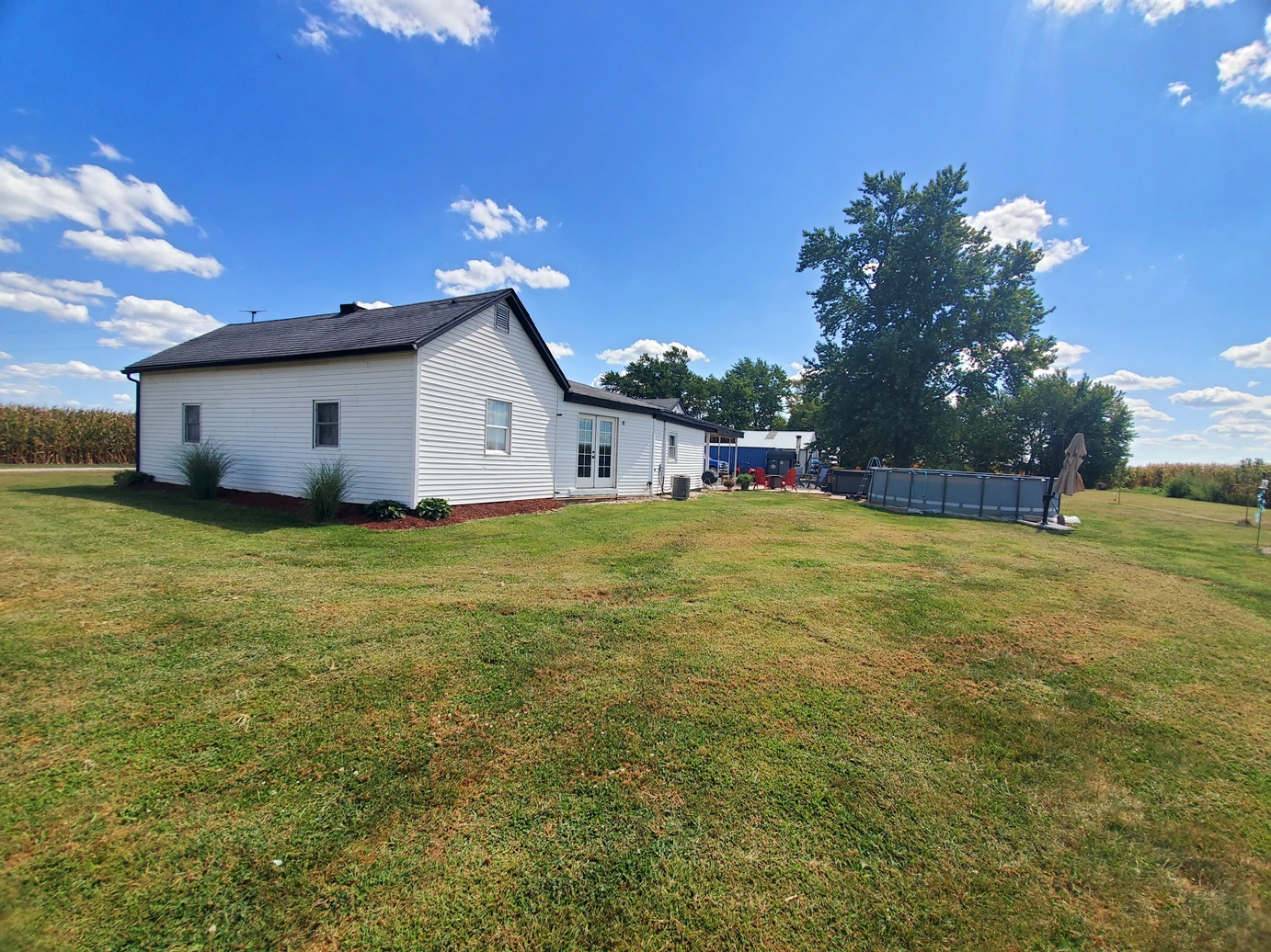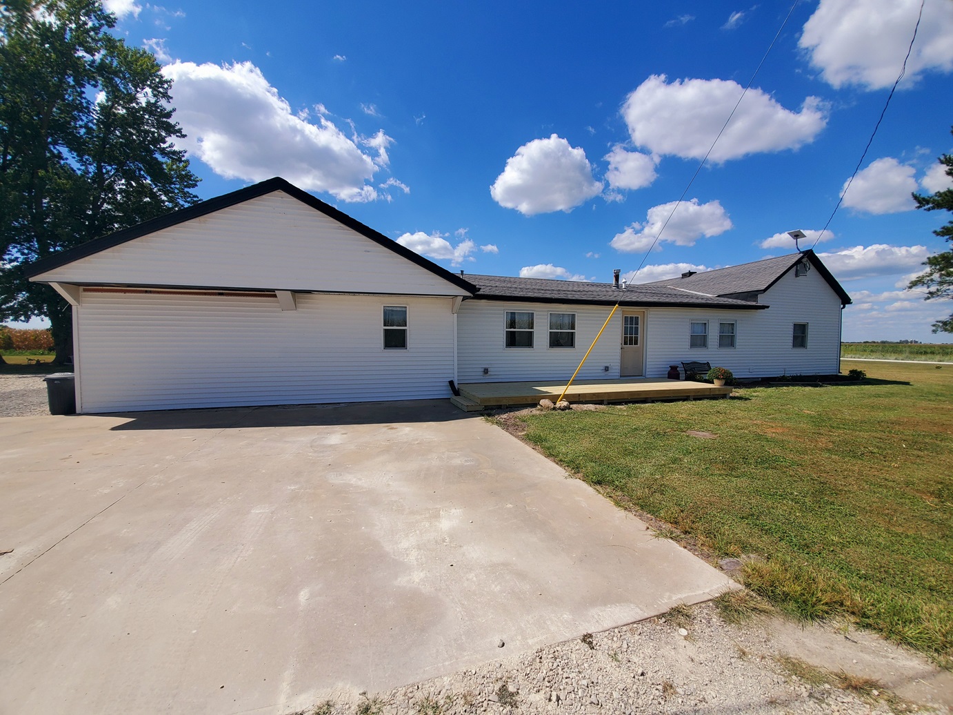 Sprawling countryside views in every direction from this freshly renovated ranch-style home! With a quiet location surrounded by crops & pasture, you won't want to leave. The 1,648 sq ft home has been carefully updated over the last few years - electric, plumbing, drywall, tile, flooring, paint, trim and so much more inside, along with an outside front deck and back patio overlooking the pool! With an open floor plan, warm paint tones, durable vinyl plank flooring, electric fireplace, floating shelves and plenty of sunlight, your family will appreciate the open living/dining space. It opens right up to the kitchen with a big island, custom tile, stainless steel appliances, and wait until you see the pantry - custom cabinetry and plenty of counter space for the coffee pot, crock pots & any other small appliances, and it comes with an upright freezer that will convey. The master features a large walk-in closet, and a divided bedroom floor plan offers two more full bedrooms on the other side of the living room. The bathroom offers a tile shower, custom concrete counters & closet storage. A handy laundry/utility room offers more storage, along with a back porch/storage room that walks out to the backyard. The 48x36 garage/shed offers plenty of parking & workshop space. With central air & a forced air furnace, an outdoor wood stove will also convey, making this a very energy-efficient home! You'll love the above ground pool & patio area, and a new front deck is the perfect spot for fall evenings.