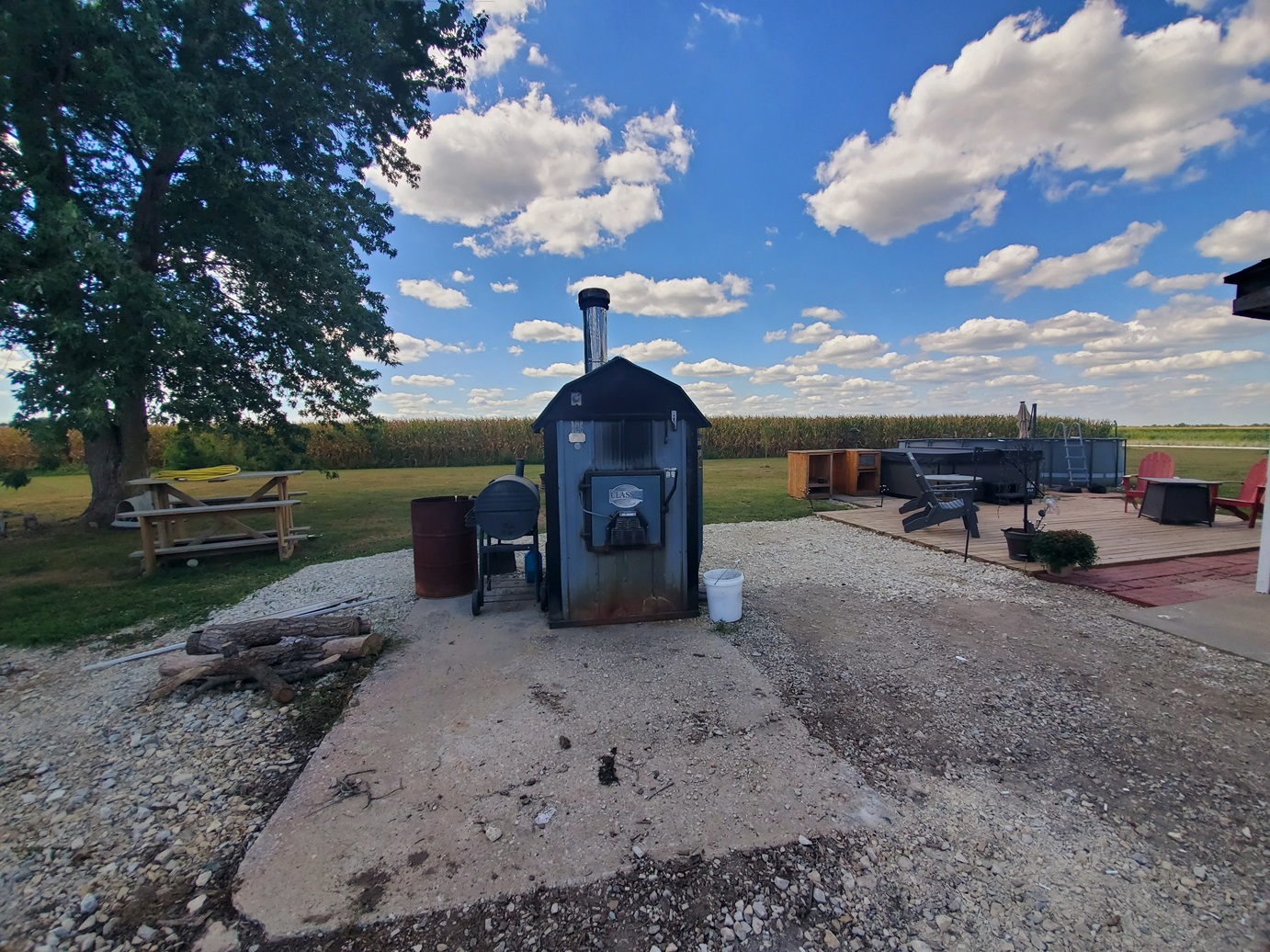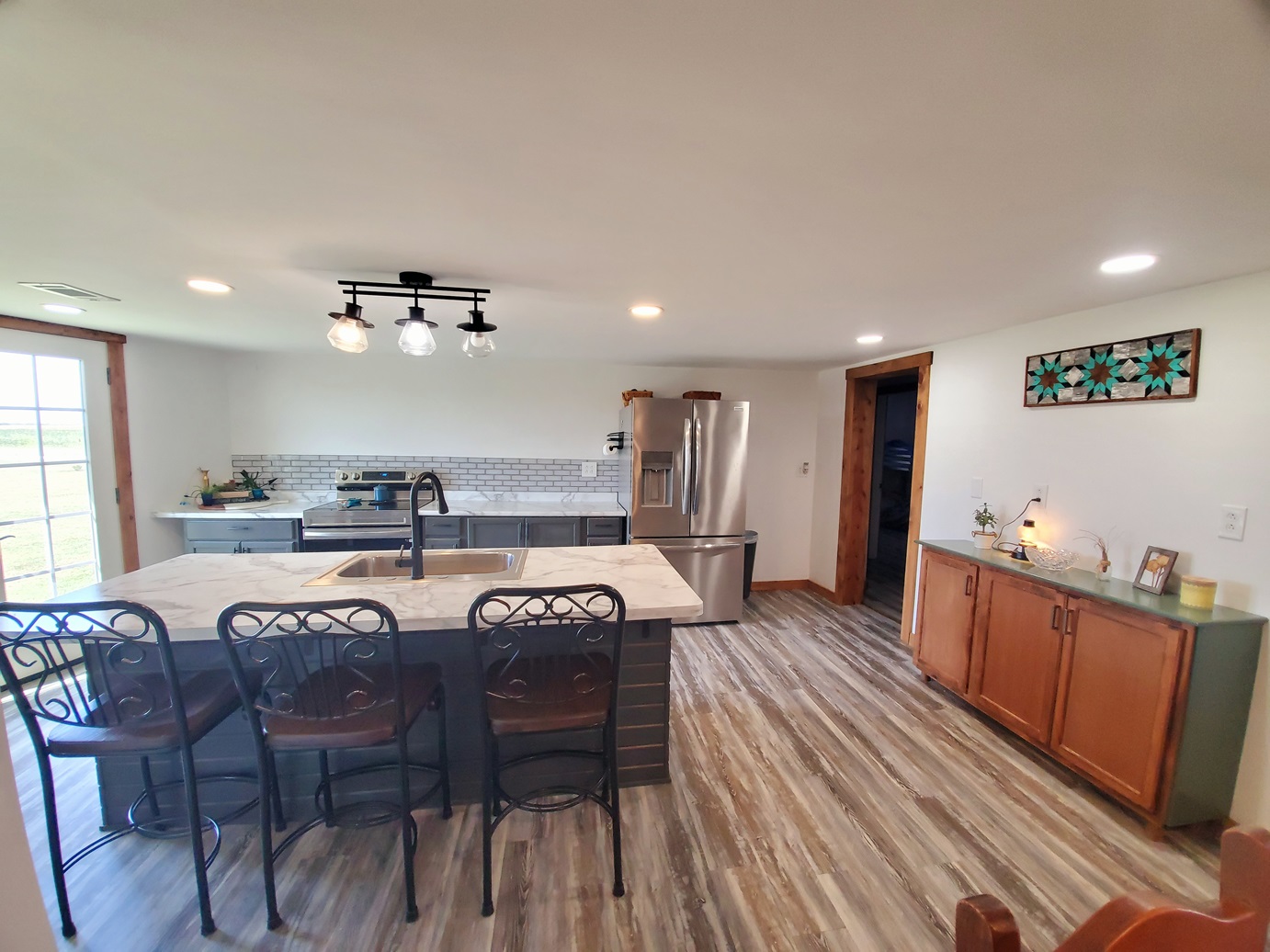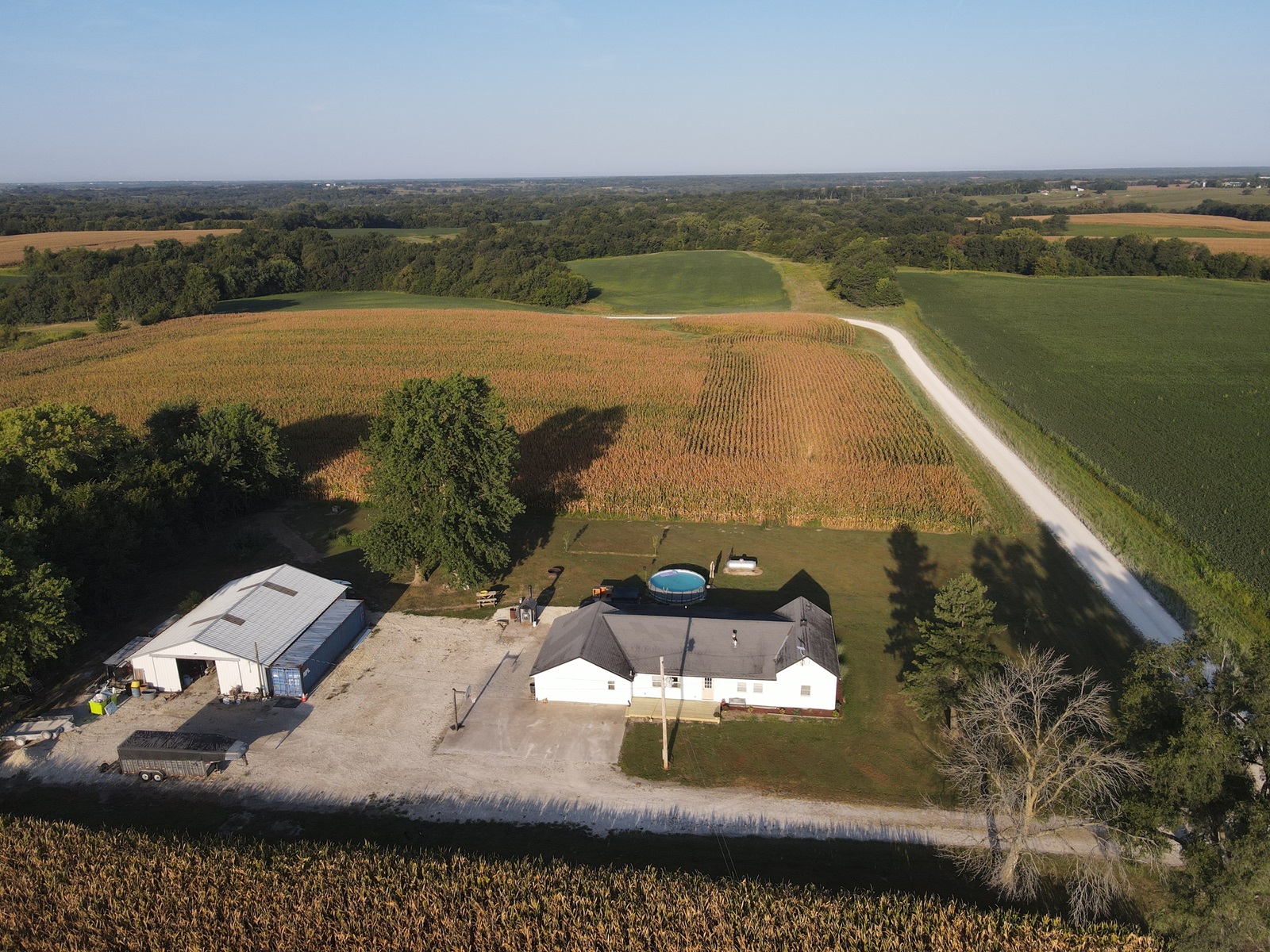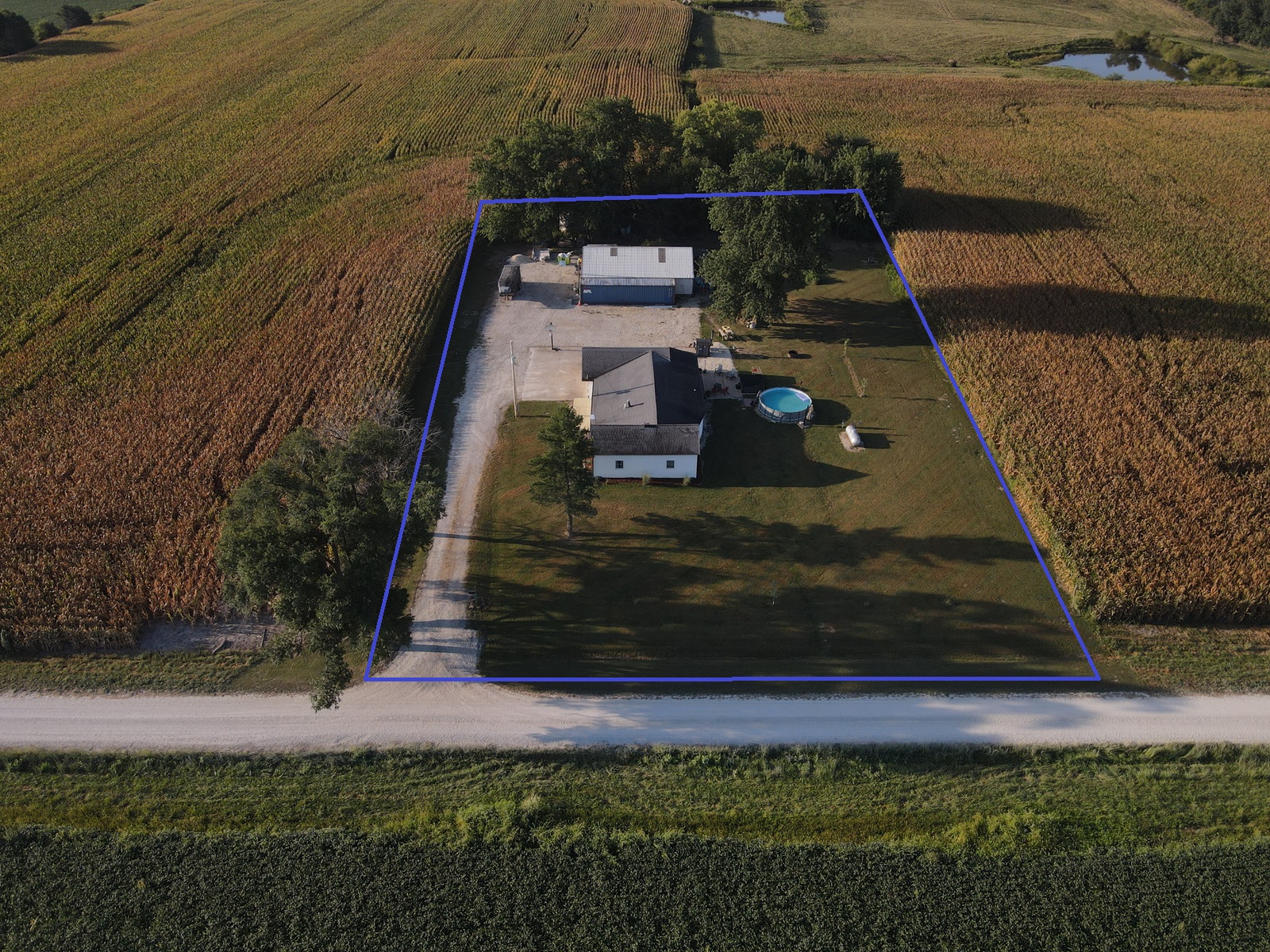 Sprawling countryside views in every direction from this freshly renovated ranch-style home! With a quiet location surrounded by crops & pasture, you won't want to leave. The 1,648 sq ft home has been carefully updated over the last few years - electric, plumbing, drywall, tile, flooring, paint, trim and so much more inside, along with an outside front deck and back patio overlooking the pool! With an open floor plan, warm paint tones, durable vinyl plank flooring, electric fireplace, floating shelves and plenty of sunlight, your family will appreciate the open living/dining space. It opens right up to the kitchen with a big island, custom tile, stainless steel appliances, and wait until you see the pantry - custom cabinetry and plenty of counter space for the coffee pot, crock pots & any other small appliances, and it comes with an upright freezer that will convey. The master features a large walk-in closet, and a divided bedroom floor plan offers two more full bedrooms on the other side of the living room. The bathroom offers a tile shower, custom concrete counters & closet storage. A handy laundry/utility room offers more storage, along with a back porch/storage room that walks out to the backyard. The 48x36 garage/shed offers plenty of parking & workshop space. With central air & a forced air furnace, an outdoor wood stove will also convey, making this a very energy-efficient home! You'll love the above ground pool & patio area, and a new front deck is the perfect spot for fall evenings.