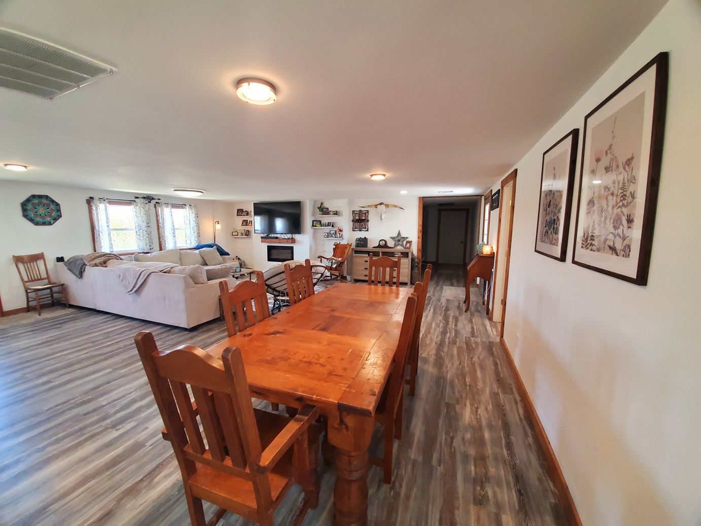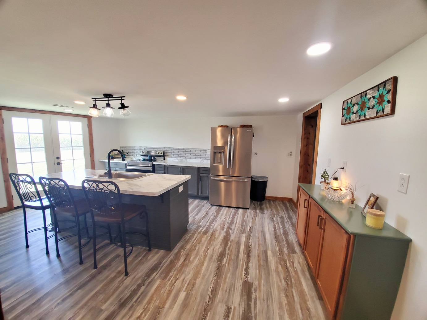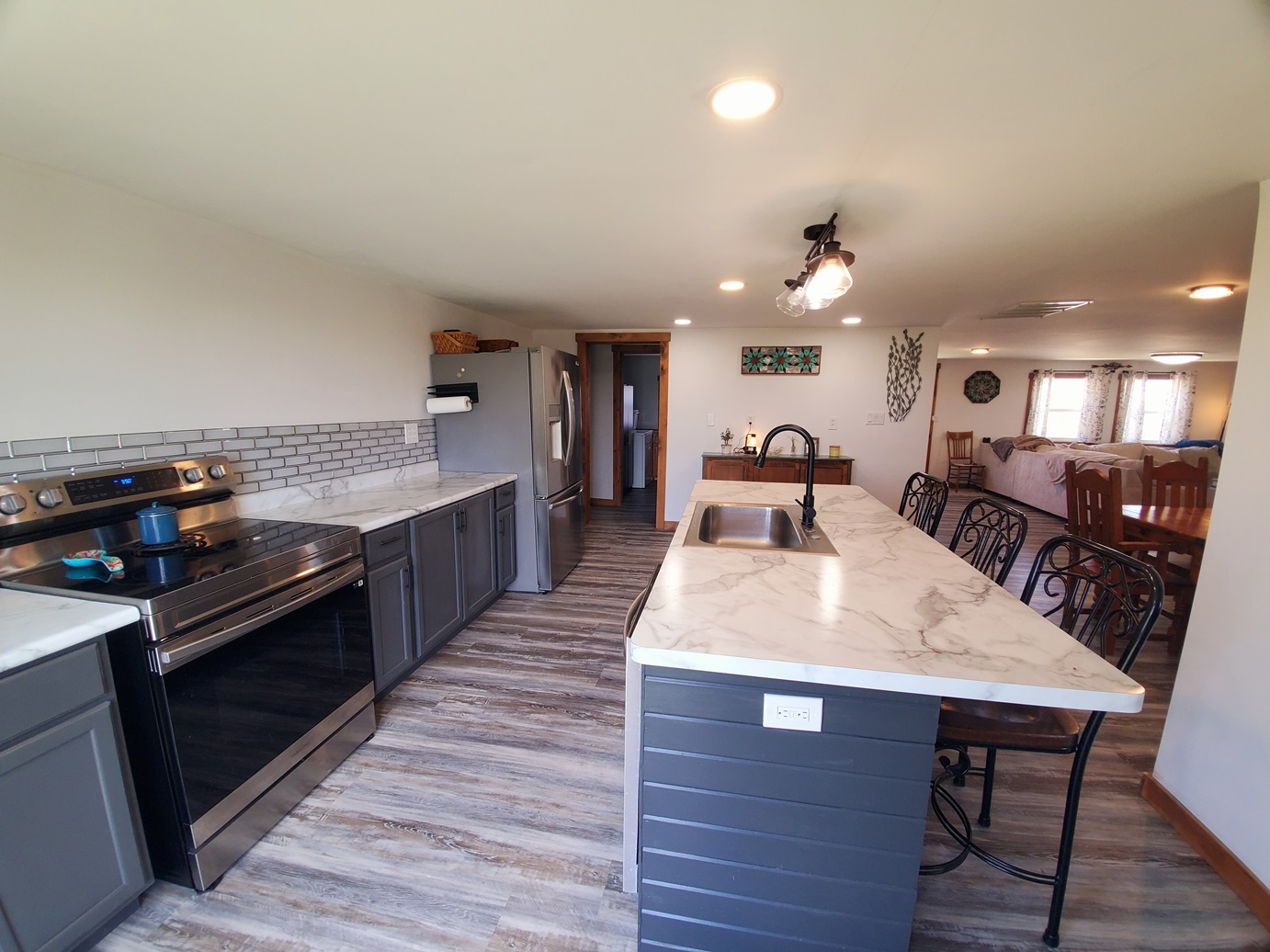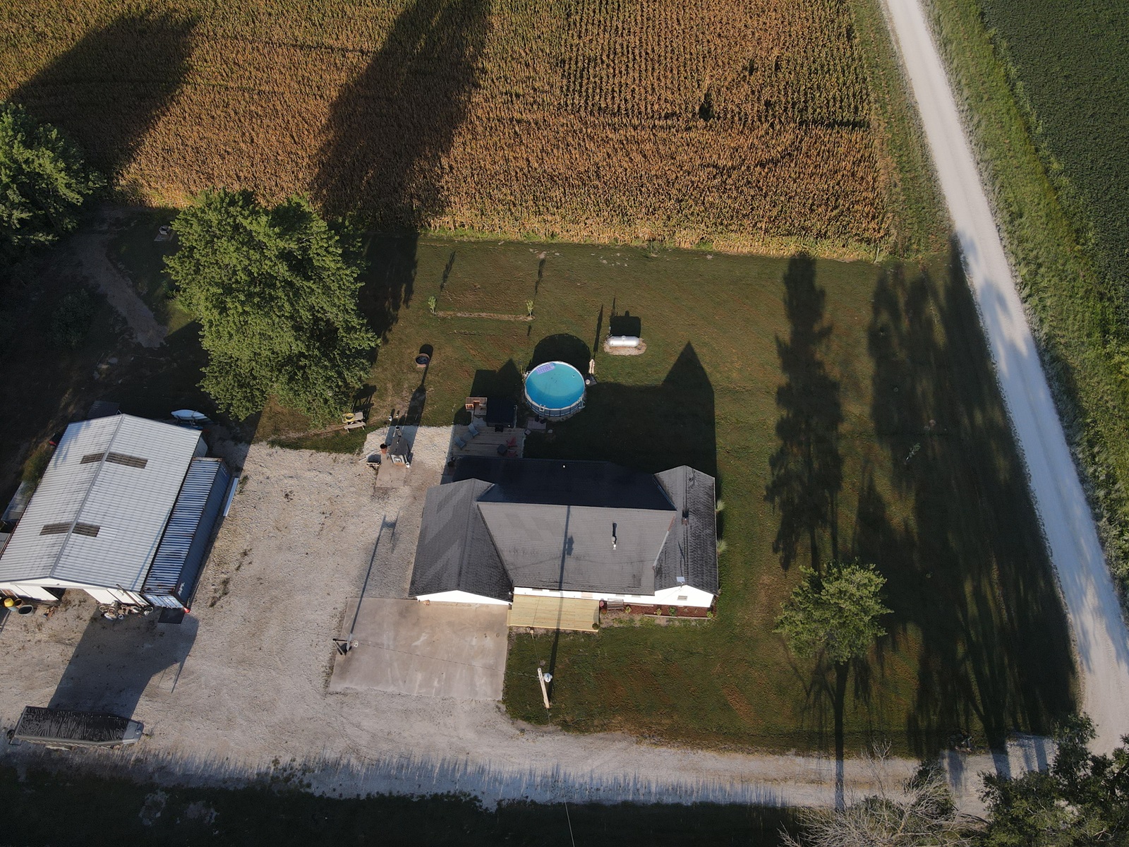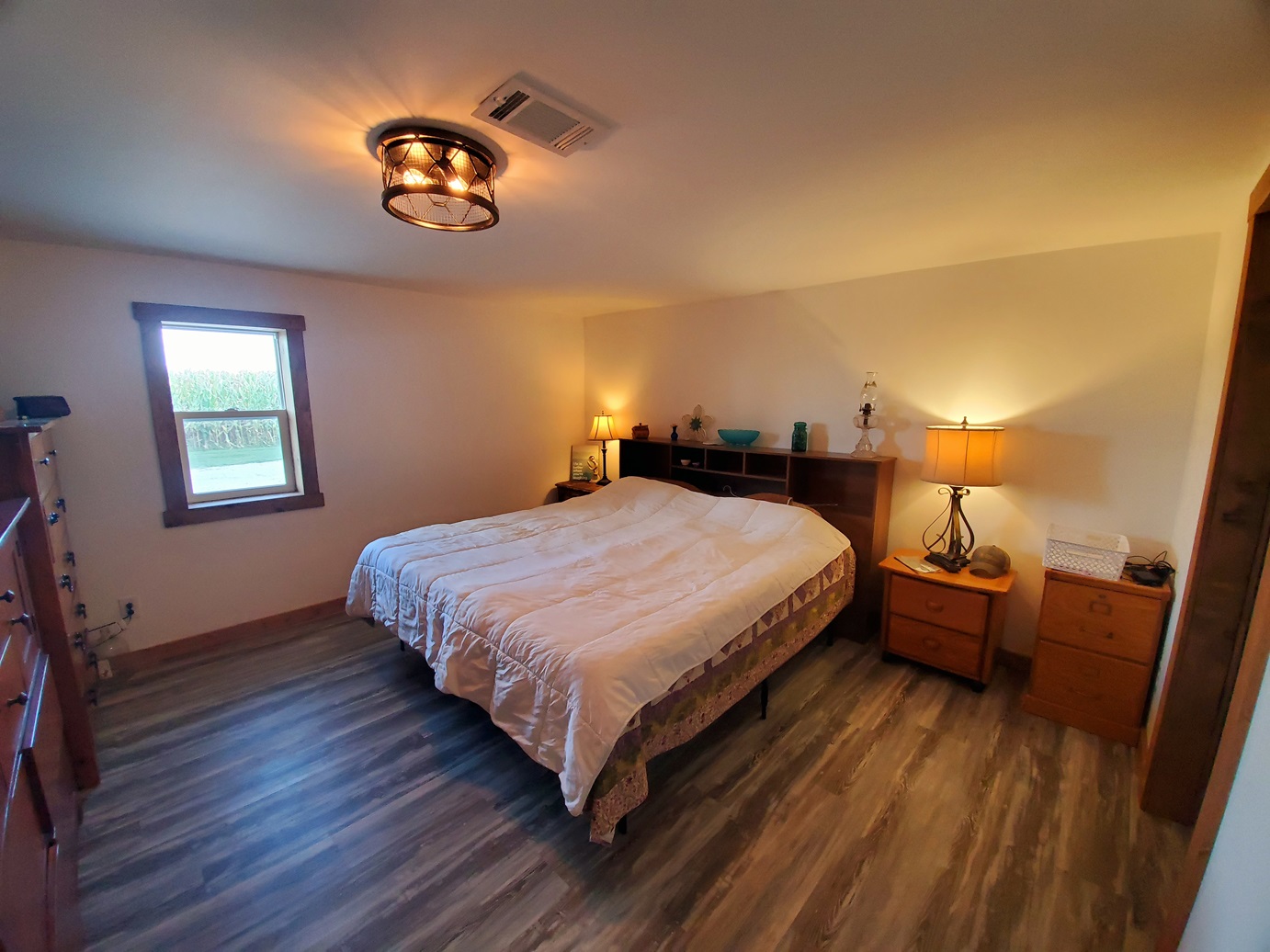 Sprawling countryside views in every direction from this freshly renovated ranch-style home! With a quiet location surrounded by crops & pasture, you won't want to leave. The 1,648 sq ft home has been carefully updated over the last few years - electric, plumbing, drywall, tile, flooring, paint, trim and so much more inside, along with an outside front deck and back patio overlooking the pool! With an open floor plan, warm paint tones, durable vinyl plank flooring, electric fireplace, floating shelves and plenty of sunlight, your family will appreciate the open living/dining space. It opens right up to the kitchen with a big island, custom tile, stainless steel appliances, and wait until you see the pantry - custom cabinetry and plenty of counter space for the coffee pot, crock pots & any other small appliances, and it comes with an upright freezer that will convey. The master features a large walk-in closet, and a divided bedroom floor plan offers two more full bedrooms on the other side of the living room. The bathroom offers a tile shower, custom concrete counters & closet storage. A handy laundry/utility room offers more storage, along with a back porch/storage room that walks out to the backyard. The 48x36 garage/shed offers plenty of parking & workshop space. With central air & a forced air furnace, an outdoor wood stove will also convey, making this a very energy-efficient home! You'll love the above ground pool & patio area, and a new front deck is the perfect spot for fall evenings.