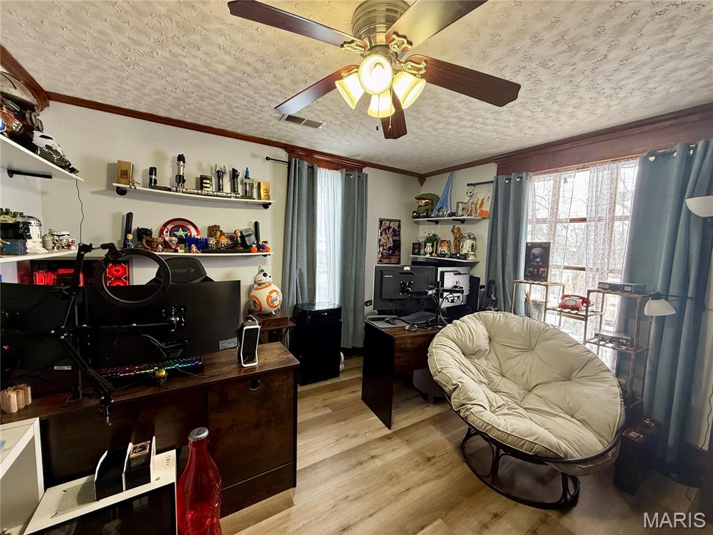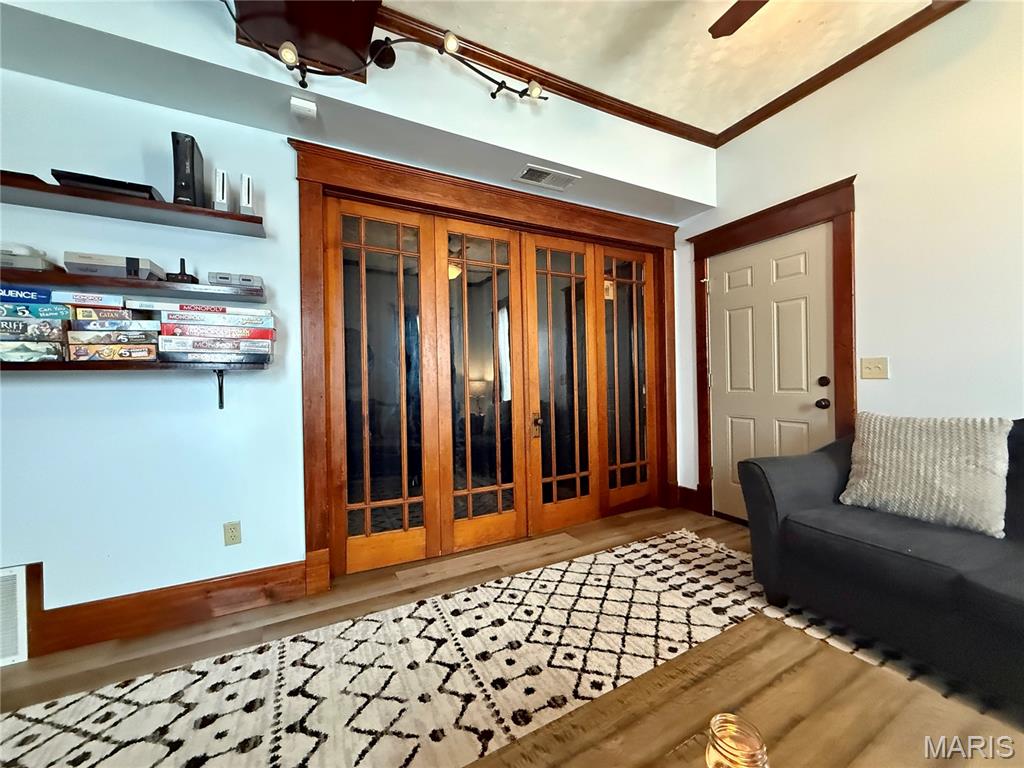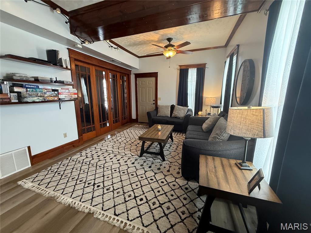 Step into this beautifully maintained home where classic charm and modern comfort seamlessly come together. Originally built in 1910, this home has been thoughtfully updated while preserving the character that makes it so special. Inside, you’ll find gorgeous wood trim, glass-paned doors leading into a bright home office, and new luxury vinyl plank flooring designed for both style and durability. The home offers 4 bedrooms and 2 full bathrooms, including a convenient main-level primary bedroom. The office provides flexibility and can easily be used as a playroom, nursery, or additional sleeping space. Main-level laundry is located just off the kitchen and includes a large walk-in closet currently used for storage and a pantry, offering plenty of room to stay organized. Outside, the fully fenced backyard is ideal for kids, pets, and family gatherings. Enjoy the beautiful courtyard between the home and detached garage—perfect for outdoor dining, relaxing, or hosting friends. A private section of the yard is set aside for pets or play space. The detached garage adds even more flexibility with a finished loft featuring mini-split systems on both levels. Currently used as a guest bedroom, this space is perfect for visiting family, a teen retreat, or a home studio, with water already available to add a future bathroom. Recent updates include a new metal roof in 2025 and new windows in 2017 for peace of mind. Conveniently located near Palmyra schools, this home offers the space, comfort, location and outdoor living everyone is looking for.
