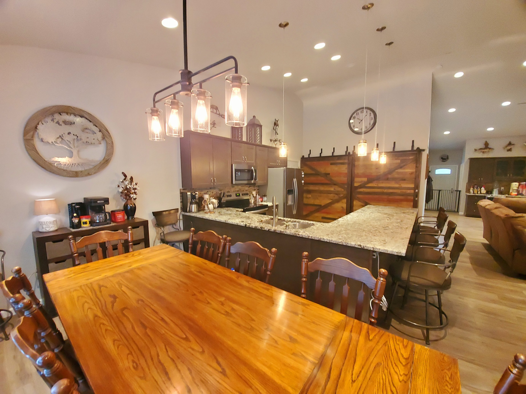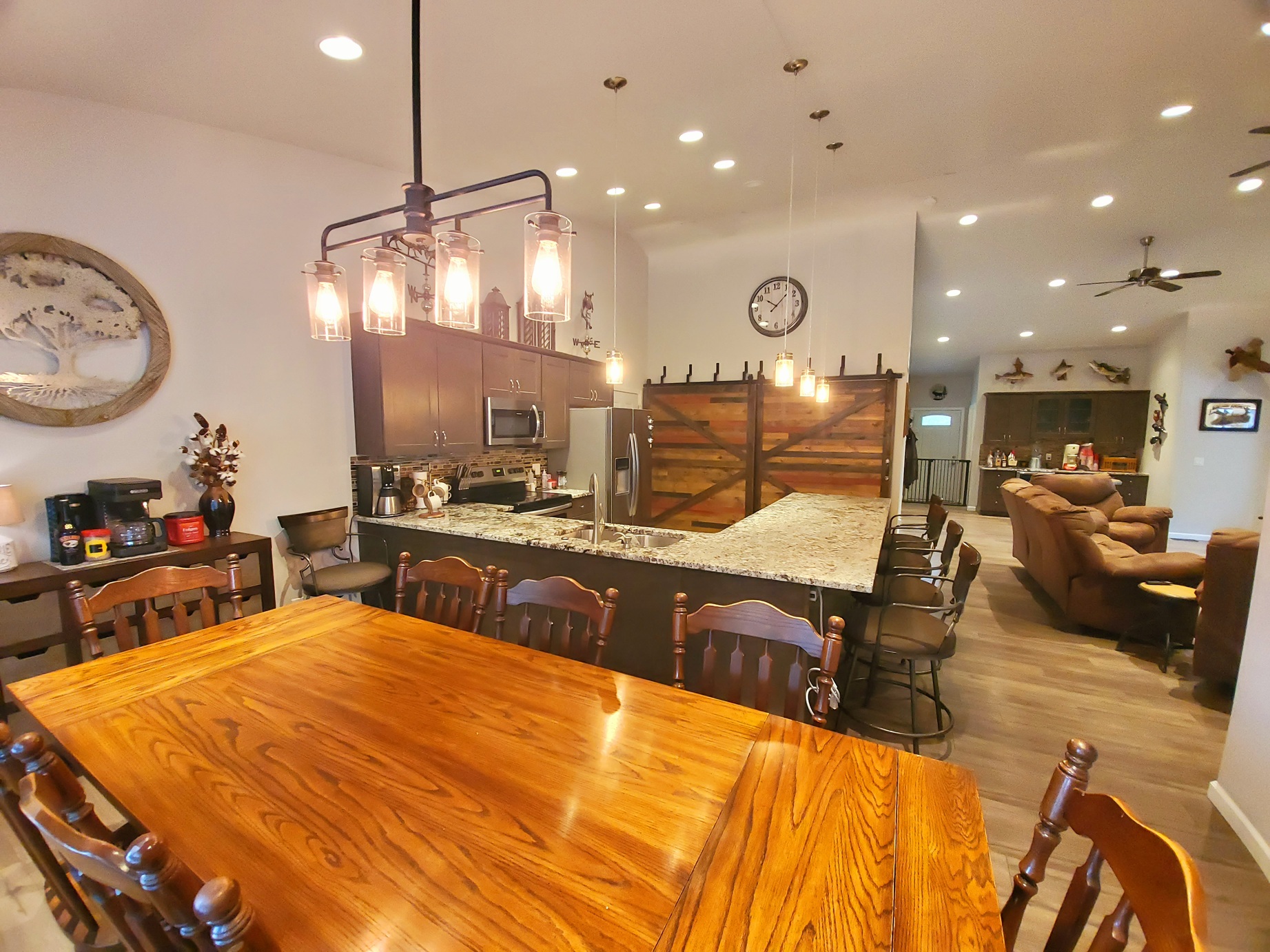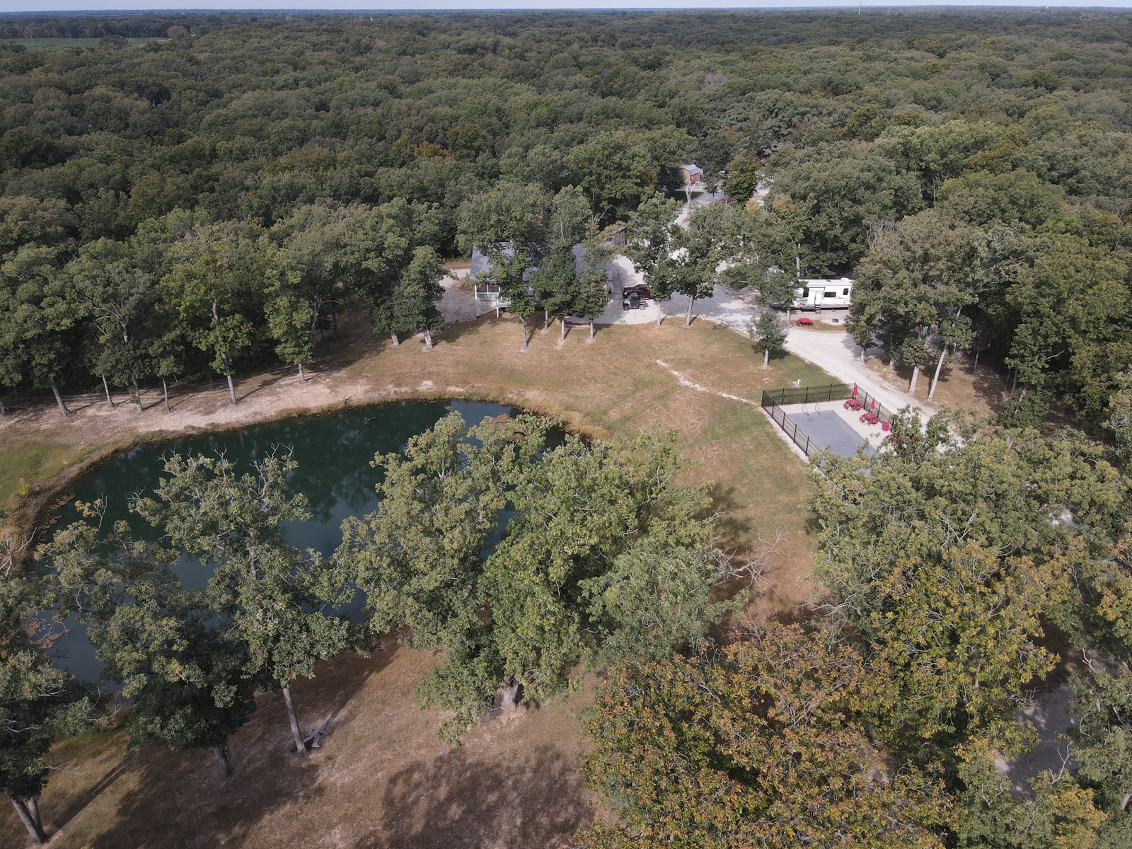 Here's your getaway - over 3,000 finished sq ft in this 5-bed, 3.5-bath home with an open floor plan, woodburning fireplace, granite counters, master suite, finished basement with living quarters and a sprawling screened-in back deck overlooking the stocked lake and timber surrounding the property. This is truly a one-of-a-kind opportunity - this low-maintenance home has been very well-kept and offers stunning surroundings. Inside you'll appreciate the high-end finishes, the attached garage and the full basement offers complete living quarters with a kitchen that walks out to the covered back patio. The stocked pond (crappie, bluegill, bass & yellow perch) offers the perfect spot to enjoy fall evenings, and an in-ground salt pool is the place to be on summer days. Also included on this surveyed 39.9 acre tract are two cabins new in 2018: each 2-bed, 1-bath, fully furnished with covered front porches and metal exterior. Along with the 11 full RV hookups (water, electric, sewer), and 1-partial hookup, this could also be a turnkey investment property. The playground, woodshed, picnic tables, firepits, etc., stay with the property. Surrounded by oak timber with an established food plot, this is prime hunting in an area known for whitetails & turkeys. With timber running clear to the south property line, there are also gorgeous sites for a possible new home with access from St. Patrick Trl. With this location the rental income stays steady - located on the edge of scenic Lake of the Oaks, this is close to many public hunting/fishing access points, and a quick 23 mile drive to Keokuk, IA or 33 miles to Quincy, IL.
