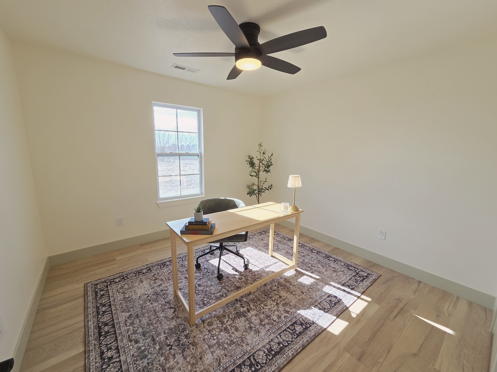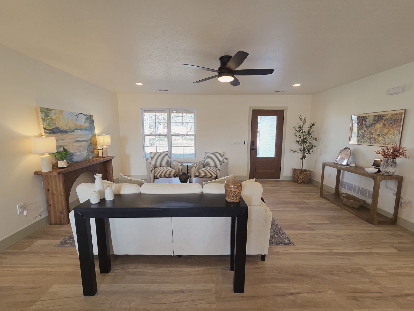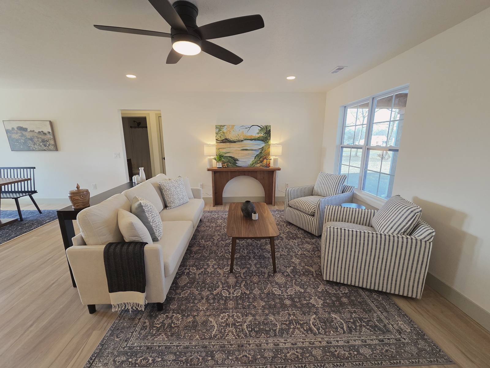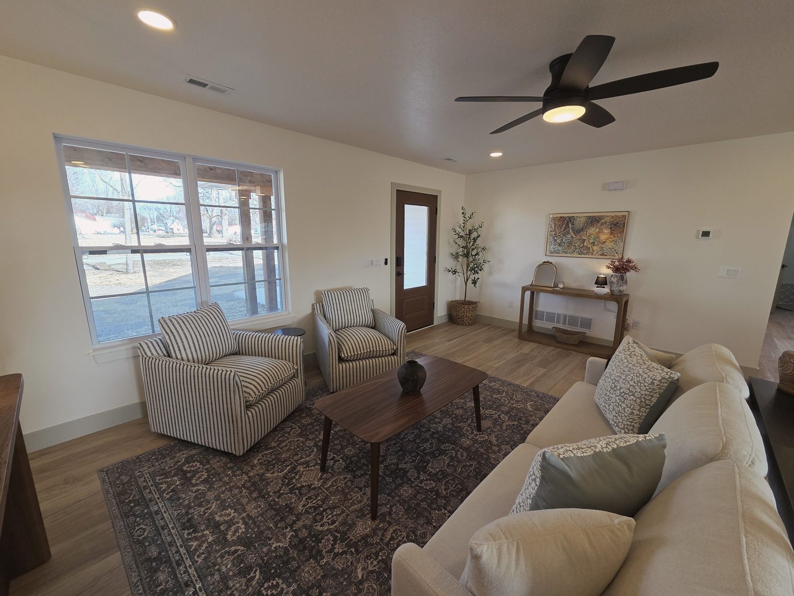 You’ll find small town charm with big style in this beautiful, new-construction home situated on 2 lots near the edge of town. This 3-bed, 2-bath home with an open concept main living and dining space awaits as you step inside the front entry. You'll appreciate the ample storage throughout, with a separate laundry room conveniently located by the double-car garage and primary suite, and several linen/pantry closets. The large primary bath and bedroom with walk-in closet will be your well-deserved sanctuary. Through the kitchen and dining space French Doors lead onto the concrete patio overlooking the back yard. The open floor plan makes this a perfect home for entertaining or keeping an eye on the kids.