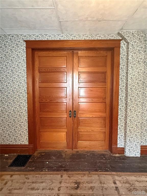 Two story home located blocks from downtown Hannibal. The interior has been cleaned and is ready for a new owner to add finishing touches. The home has original pocket doors, woodwork, and built-in cabinet. The main level has a living room, dining room, extra room that could be office or family room (currently being used as laundry room and half bathroom), and kitchen. The kitchen has new white cabinets and appliances convey. The second level has three bedrooms and an updated full bathroom. The basement is concrete and stone that walks out and has tall ceilings. The basement would be a great for storage. The backyard is flat and mostly fenced. There is off street parking to the side of the house. Home is being sold as is, where is as.