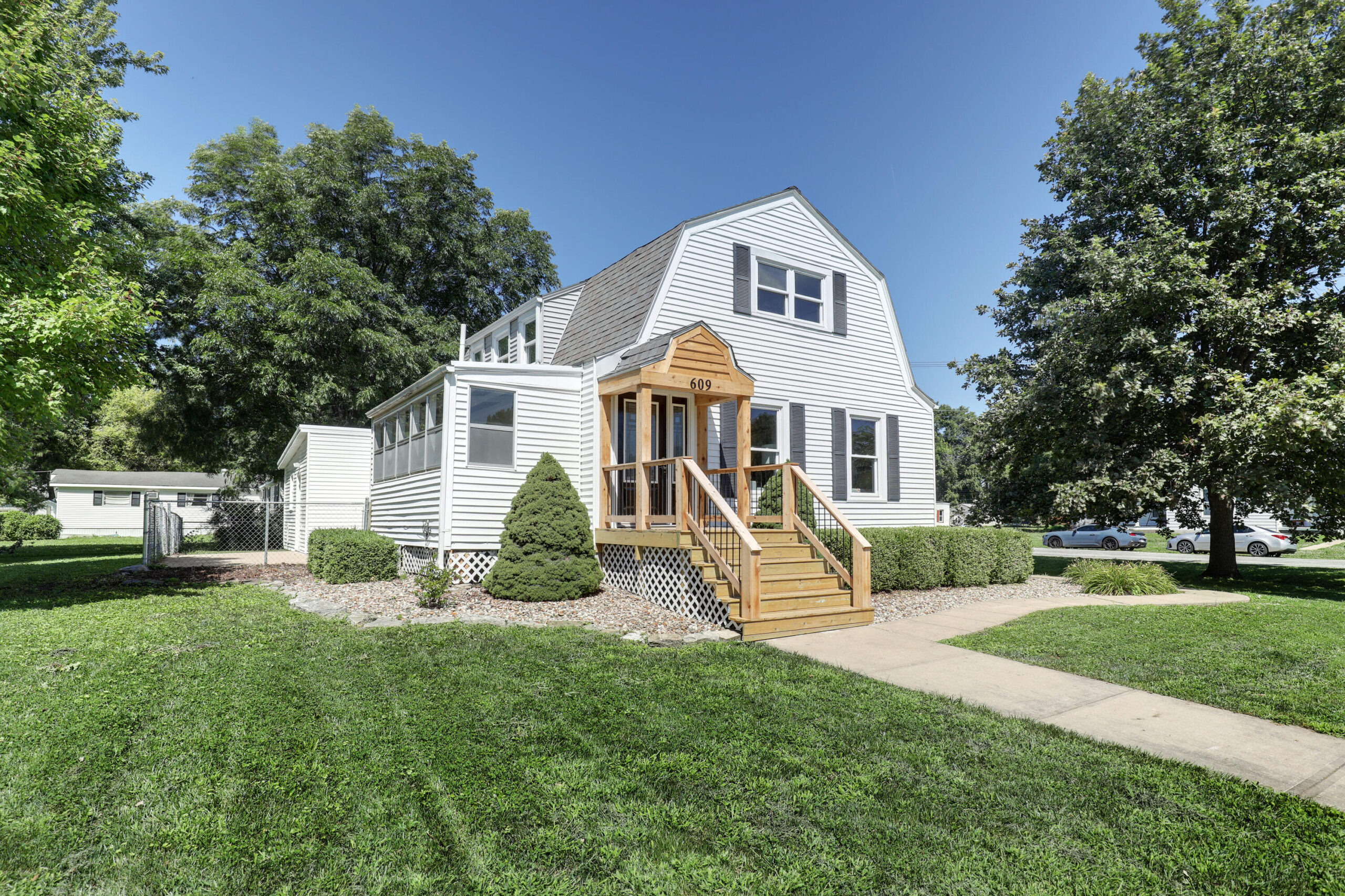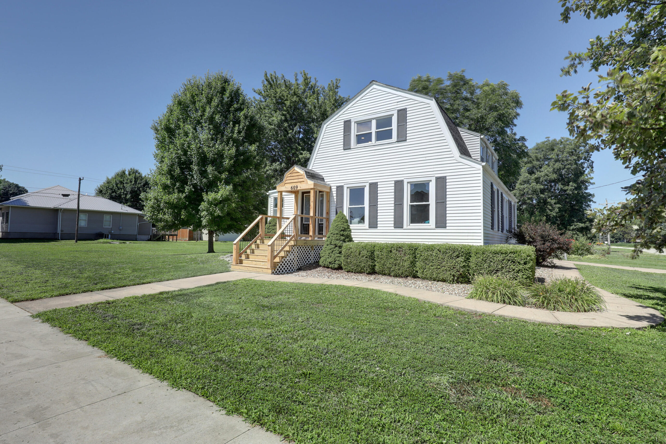 Stunning renovations in this 3-bed, 2-bath home on quiet 7th Street greet you as soon as you walk in the door. Timeless features like the arched doorway, built-in shelving & cozy layout combined with modern upgrades like flooring, tilework, counters, fixtures and more make this one worth a look. You'll love the kitchen - with tile backsplash, butcher block counters, new fixtures, coffee-bar area & center island, as well as new stainless steel appliances that will convey. The front living room offers an electric fireplace, updated vinyl plank flooring and leads to the ideal sunroom overlooking the double lot & private back patio. The master bed, bath & laundry room round out the main level. Upstairs you'll find two more bedrooms, a full bath and cozy reading nook or office at the top of the stairs. A full basement offers plenty of storage and houses the utilities. An attached garage & paved driveway offer plenty of parking on this corner lot location.