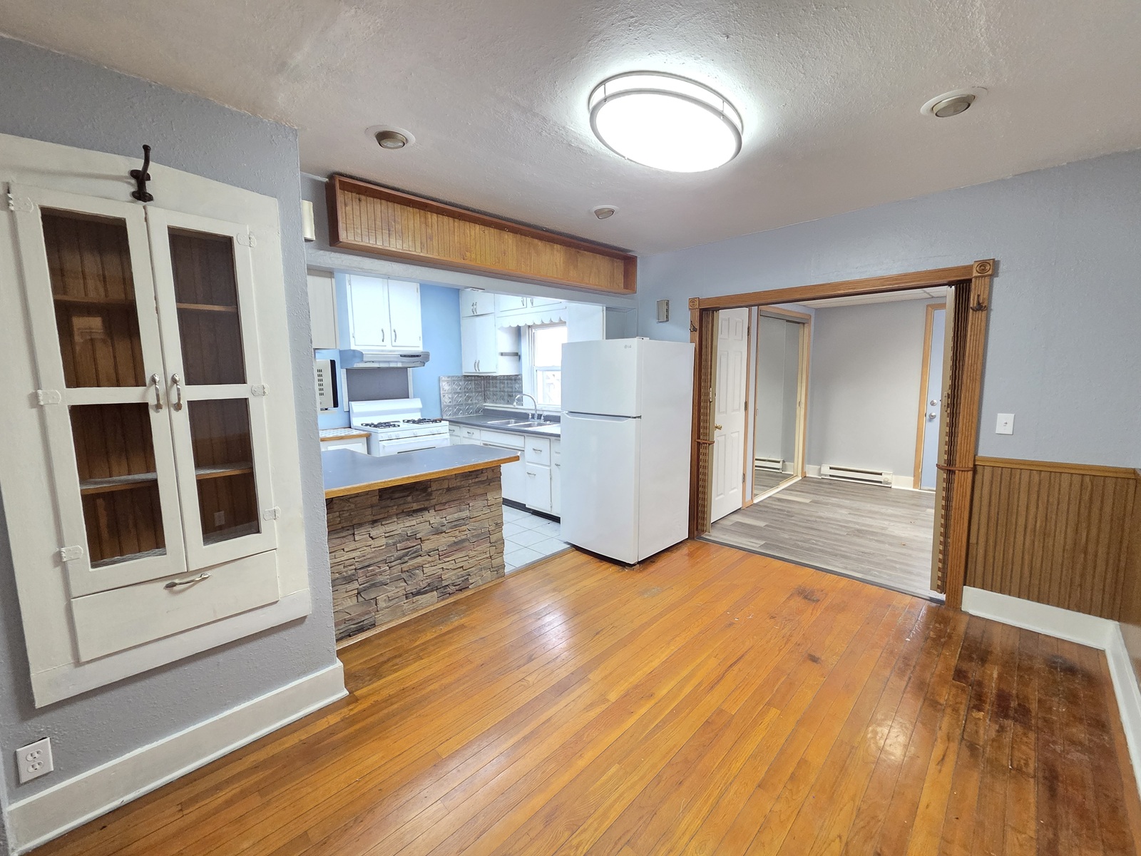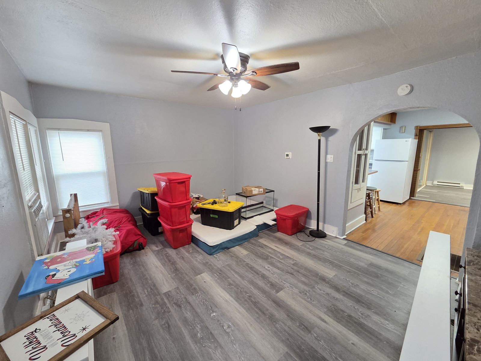 - Floor covering: Hardwood, Vinyl