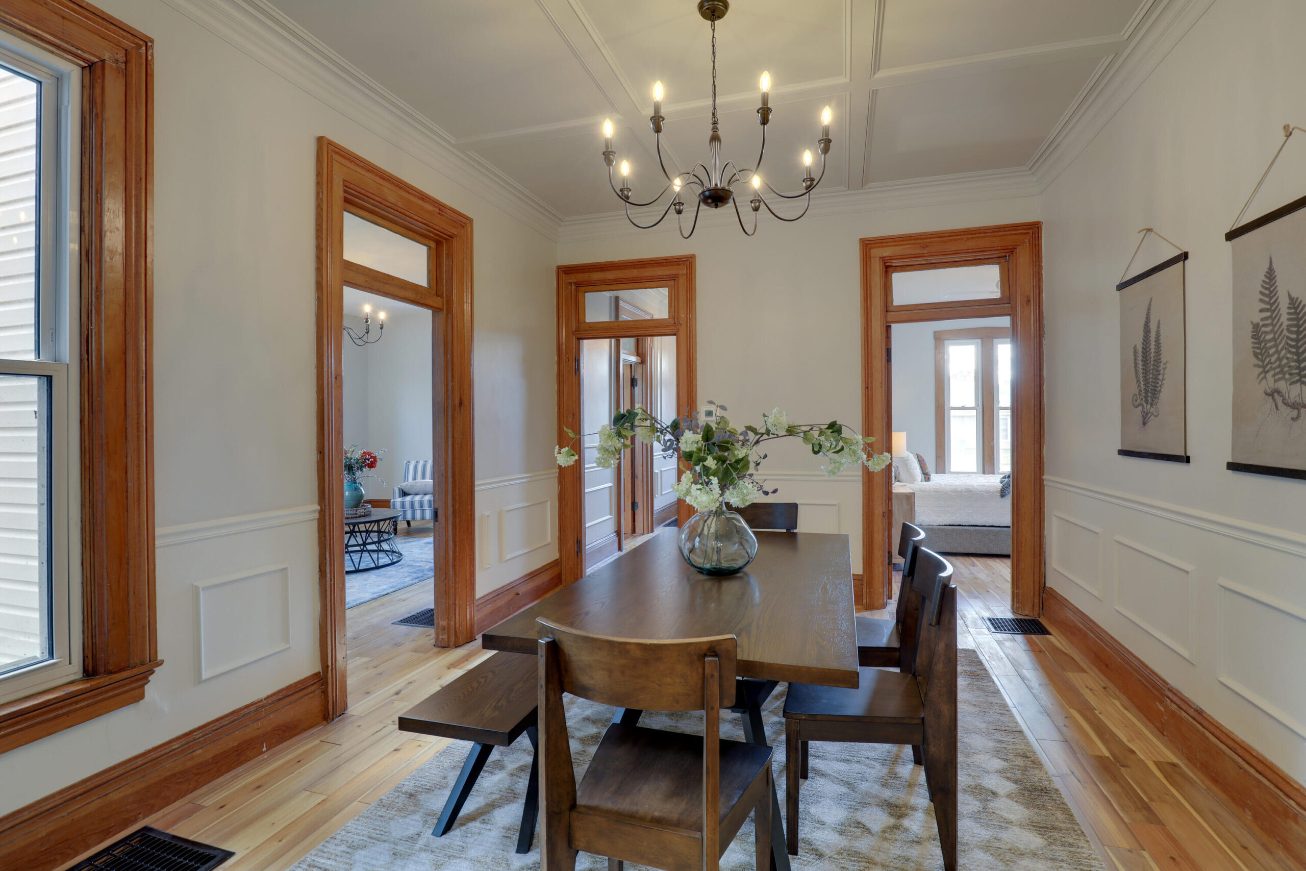 Gorgeous features here! This elegant 2-story Canton, MO home has been carefully restored and still includes the original butternut trim, transom windows & picture-perfect front porch. Those features combined with a new kitchen and updated bathrooms, hardwood floors, windows, trim work, fixtures and paint - make it fit for a magazine. You'll appreciate the main level master suite with shower & soaking tub. The main level also includes a spacious living room overlooking the front porch, classic dining room, sunroom, another full bath (with new tile shower!) as well as the laundry hookups. Upstairs you'll find all updated bedrooms, along with a full bath & landing area, which is served by a new HVAC system. The full basement houses the utilities and offers plenty of storage. An attached 3-car garage boasts 1025 sq ft (41x25), 3 overhead doors, and is heated & insulated. A metal roof, vinyl siding, many updated windows & updated zoned HVAC (one furnace 2022, one furnace & ac 2025), should make this an efficient home. Sitting on a quiet corner lot on tree-lined White St in Canton, MO, this is within walking distance to the ball field, pool & downtown attractions & a quick 20 min drive to Quincy.