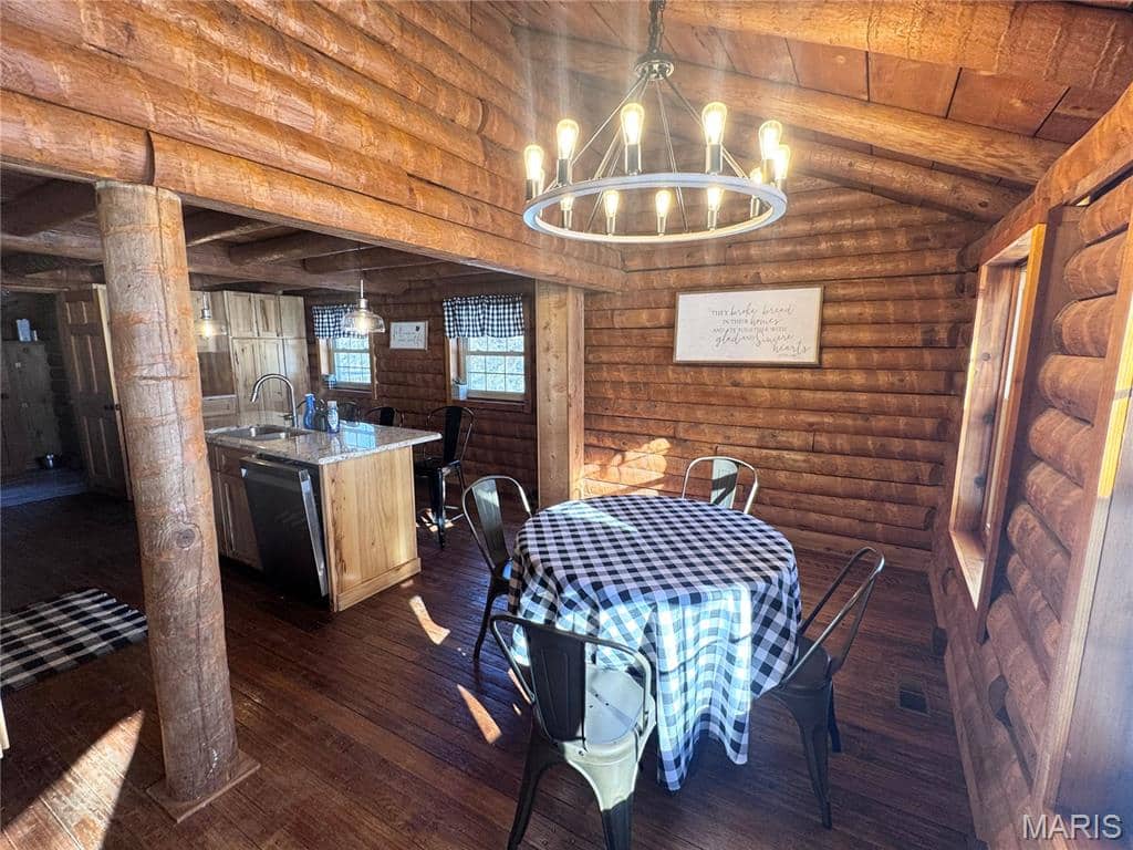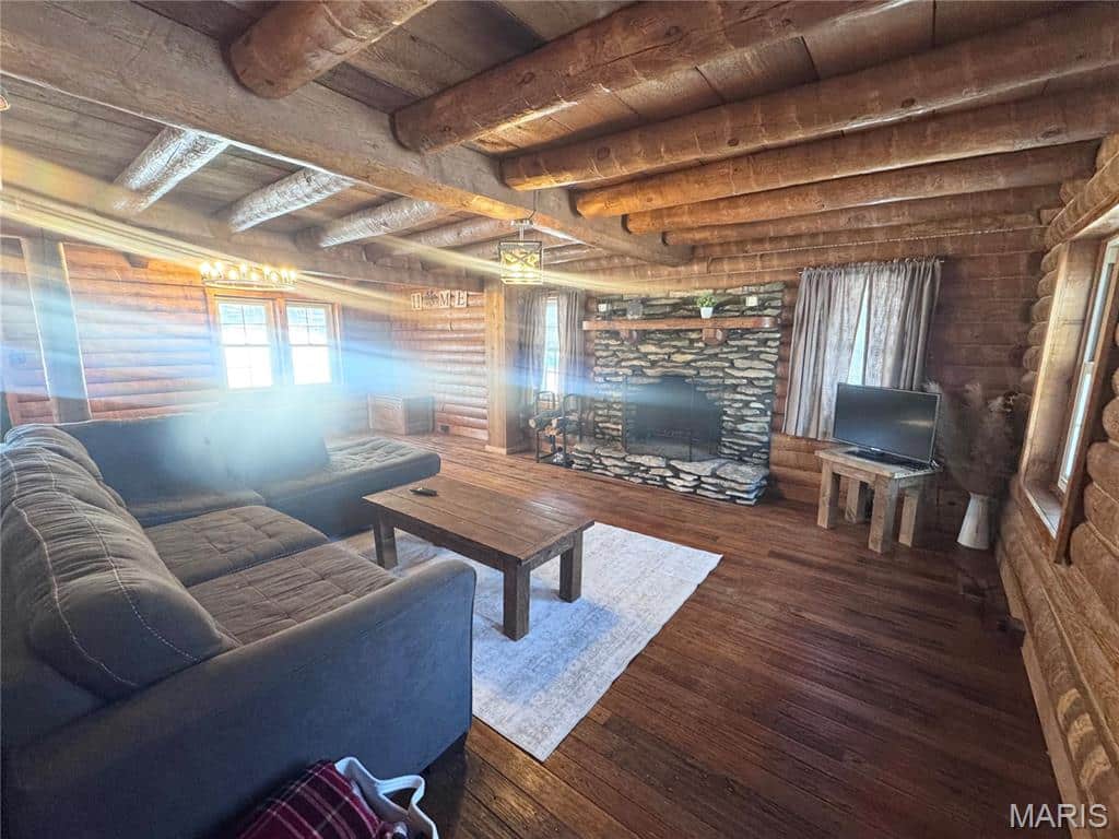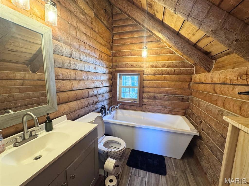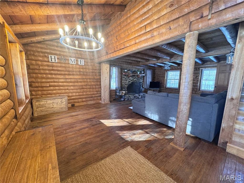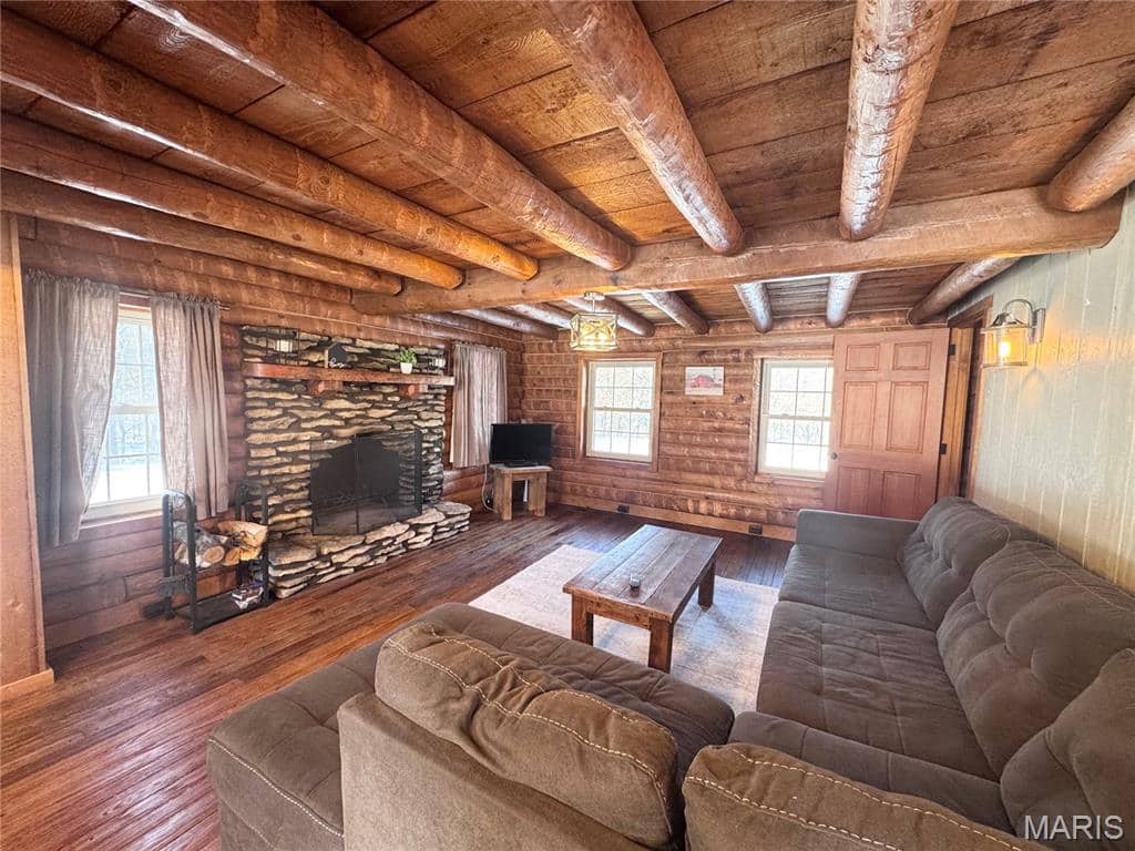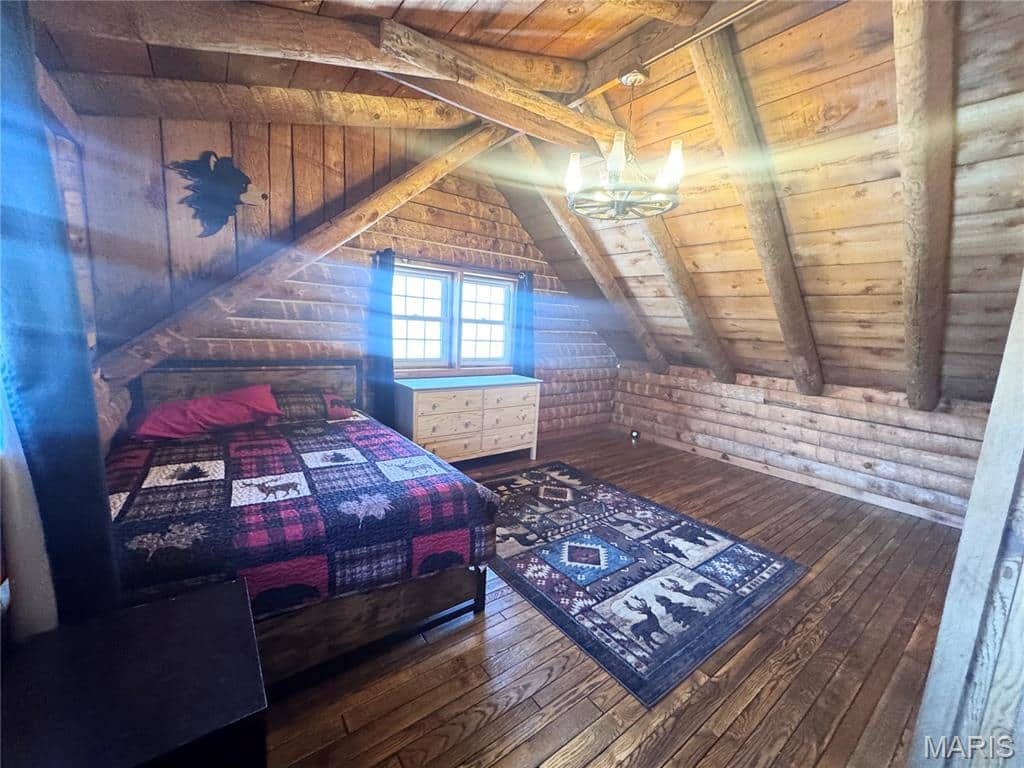 A charming 3 BR, 2 BA, log cabin house to call home! It is situated on 7+/- acres of hunting ground and located only 7 miles North West of Monroe City, Missouri on a blacktop highway. When entering the cabin to your left you will find a spacious living area with a custom stone wood burning fireplace. To the right there is an all custom kitchen area featuring custom cabinetry, granite countertops, and several other features. The generous master ensuite sits downstairs and offers multiple options to fit your needs. From the newly built deck you can enjoy the large yard and wooded property that features mature trees and wildlife. The large detached garage features concrete floors and electricity and features a large two car parking area in the front. In the back you will also find a one car garage. The yard area is fully fenced with the benefit of a timbered area in back. You have to see it to really understand the beauty this place offers.